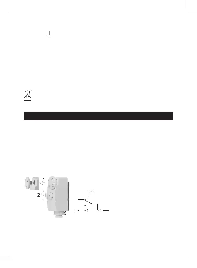 1. Otvorte termostat tým, že odstránite povytiahnutím číselník (1) a uvoľníte veľkú plastovú skrutku (2).