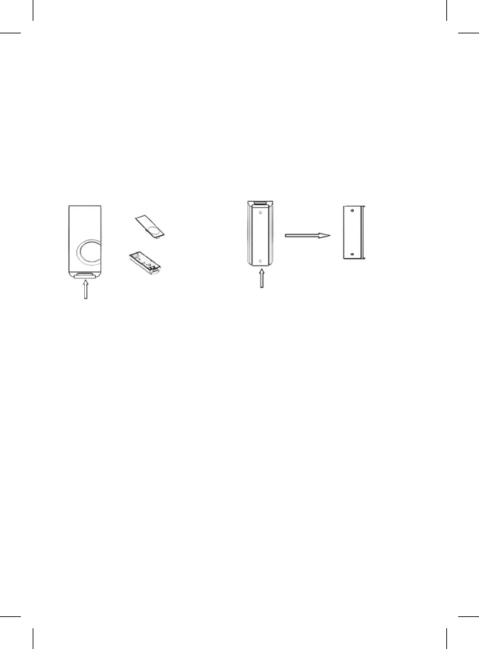 1. Зніміть верхню частину кришки кнопки. Вставте у кнопку батарейку 12В, тип A23. Дотримуйте правильну