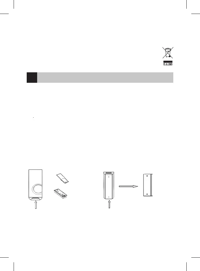 1. Paspaudę atidarymo mygtuką nuimkite mygtuko priekinį dangtelį. Atidžiai žiūrėdami poliarumą įdėkite 12V