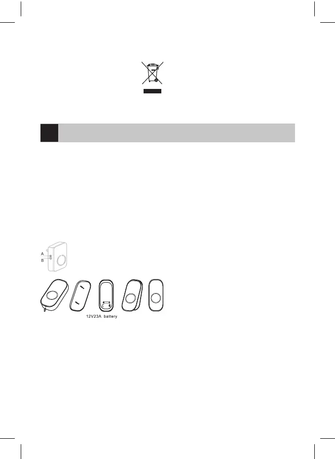 Soupravu tvoří tlačítko zvonku (vysílač) a domácí zvonek (přijímač). Zvonek je určen k trvalému připojení k elektrické síti o napětí 230VAC/50Hz.