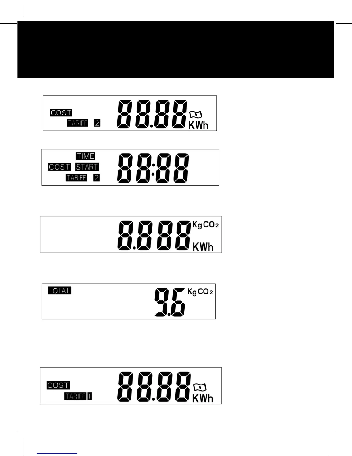Keep pressing the „COST/-“ button until you reach the power current tari settings.