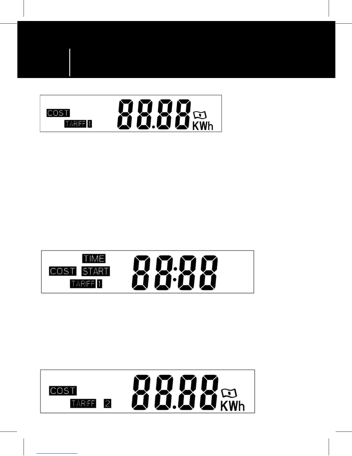 „ENERGY/+“ or „COST/-“ to set arange between 0.00 EUR/kWh and 9 999 EUR/kWh;