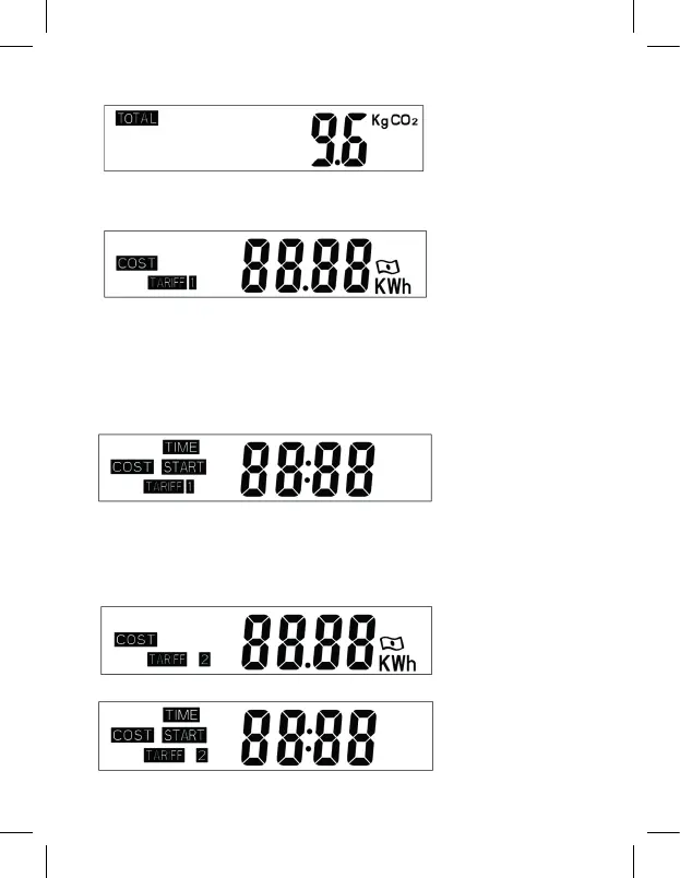 Spauskite mygtuką „COST/-“, kol pasieksite elektros srovės tarifo parametrus.