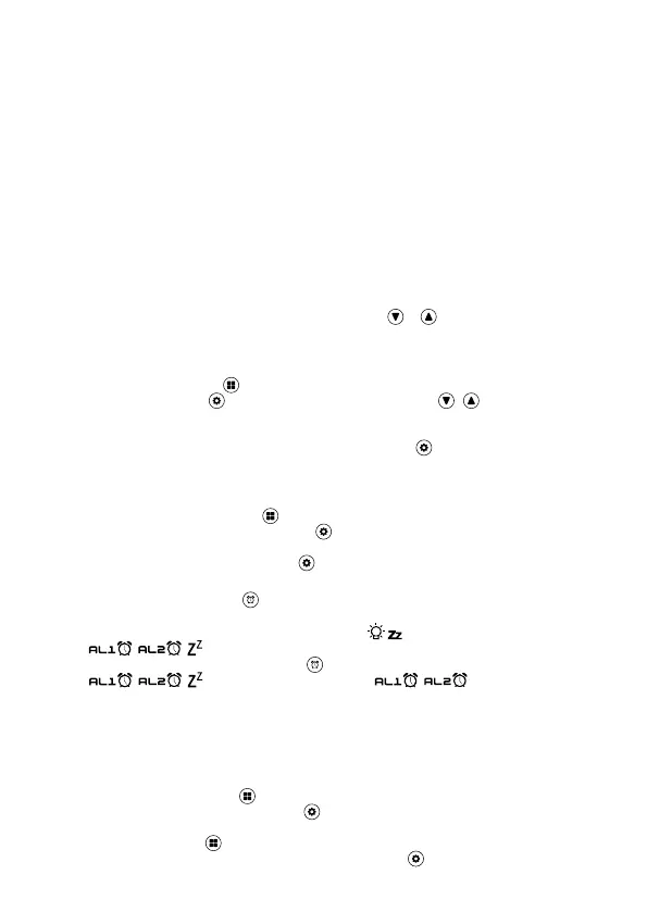 Поступово натискаючи на кнопку активуйте будильник 1 (AL1); будильник 2 (AL2); або обидва