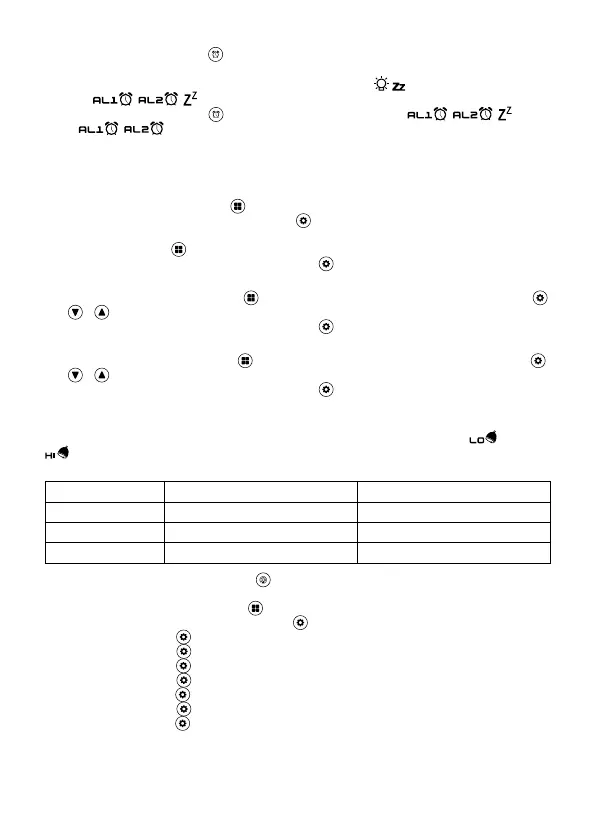 Pakartotinai paspaudus mygtuką įjungsite 1 žadintuvą (AL1), 2 žadintuvą (AL2), abu žadintuvus vienu
