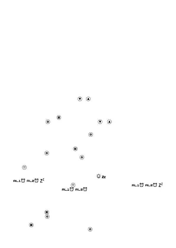 2. Vajutage nuppu 3 sekundit ja kasutage noolenuppe, et määrata alarmi tund ja minut.