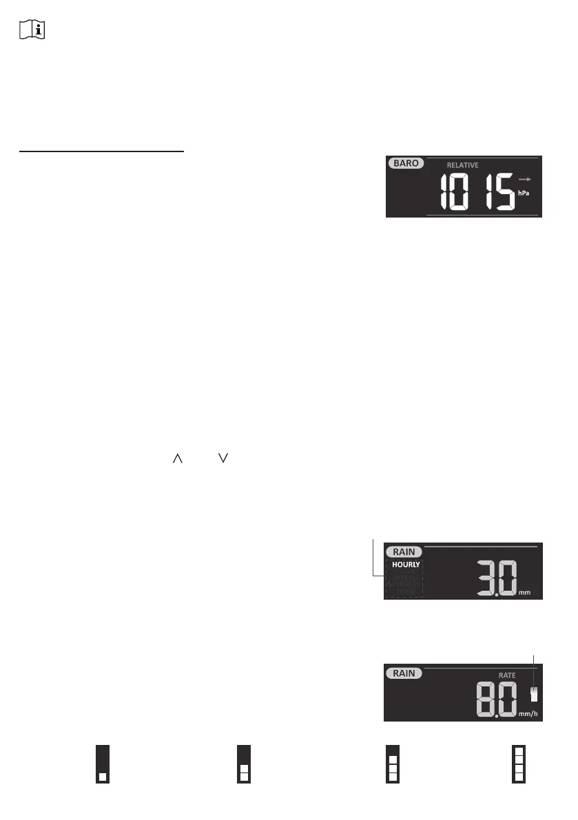 La section PLUIE afche les informations sur les précipitations ou le taux de pluie.