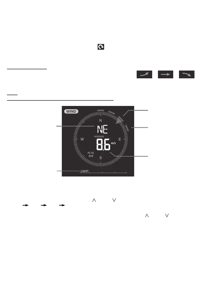 Avläsaren för vindriktningen börjar då att blinka. Tryck sedan på [ ] eller [ ] för att välja