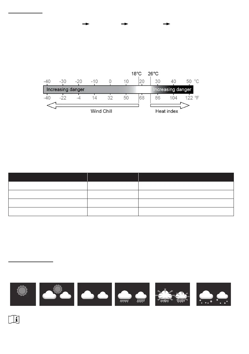 10°C med en vindhastighet under 9km/h kan resultera i felaktig avläsning av vindens kyleffekt).