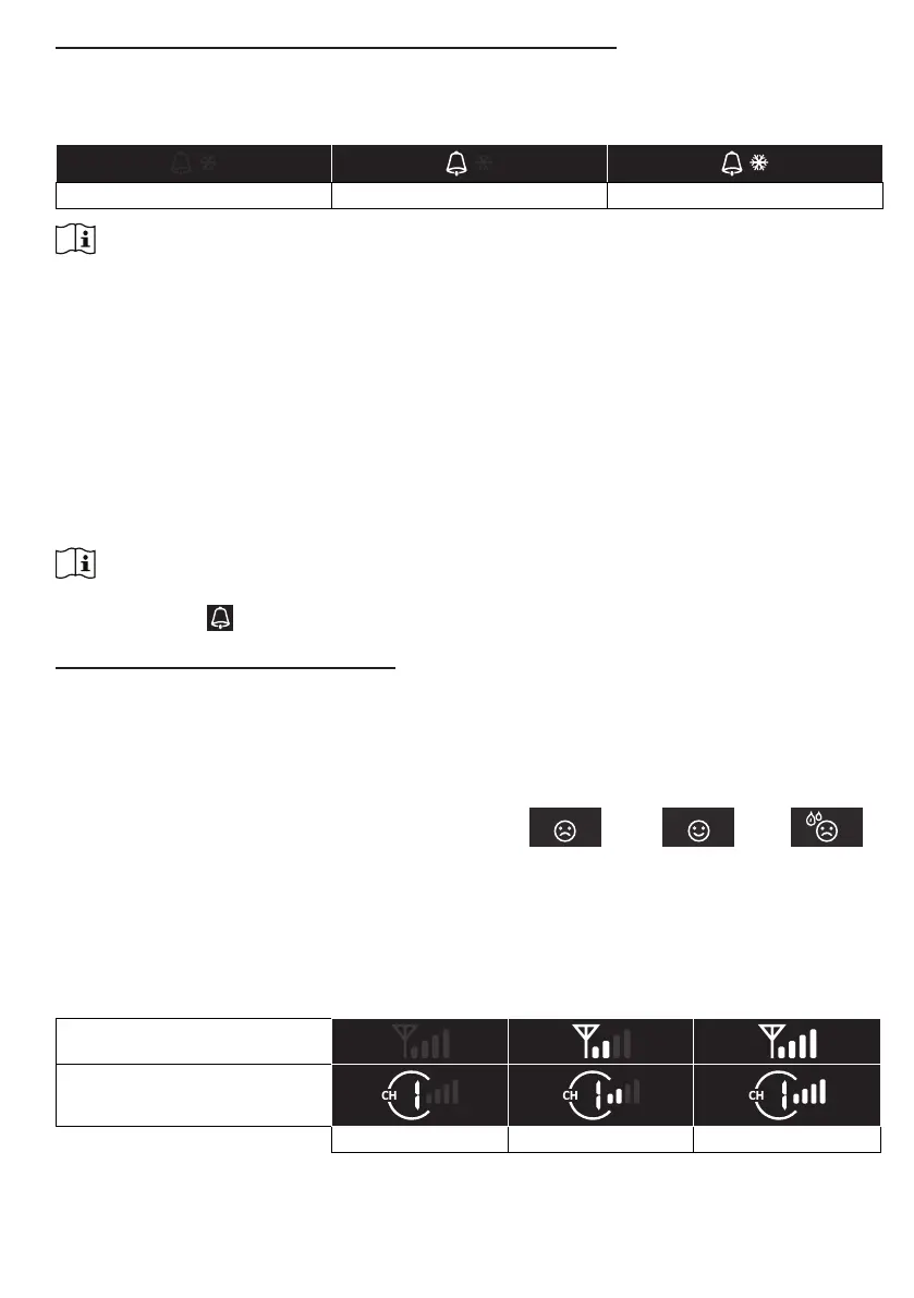 1. Langaton anturin / antureiden konsolin näyttösignaalin voimakkuus alla olevan taulukon mukaisesti: