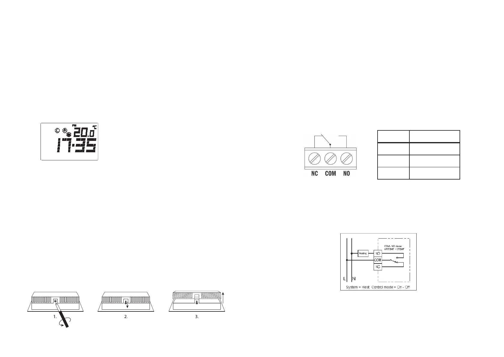 2. Na svorku označenú NO pripojte vodič od kúrenia (klimatizácie). Kúrenie (klimati-