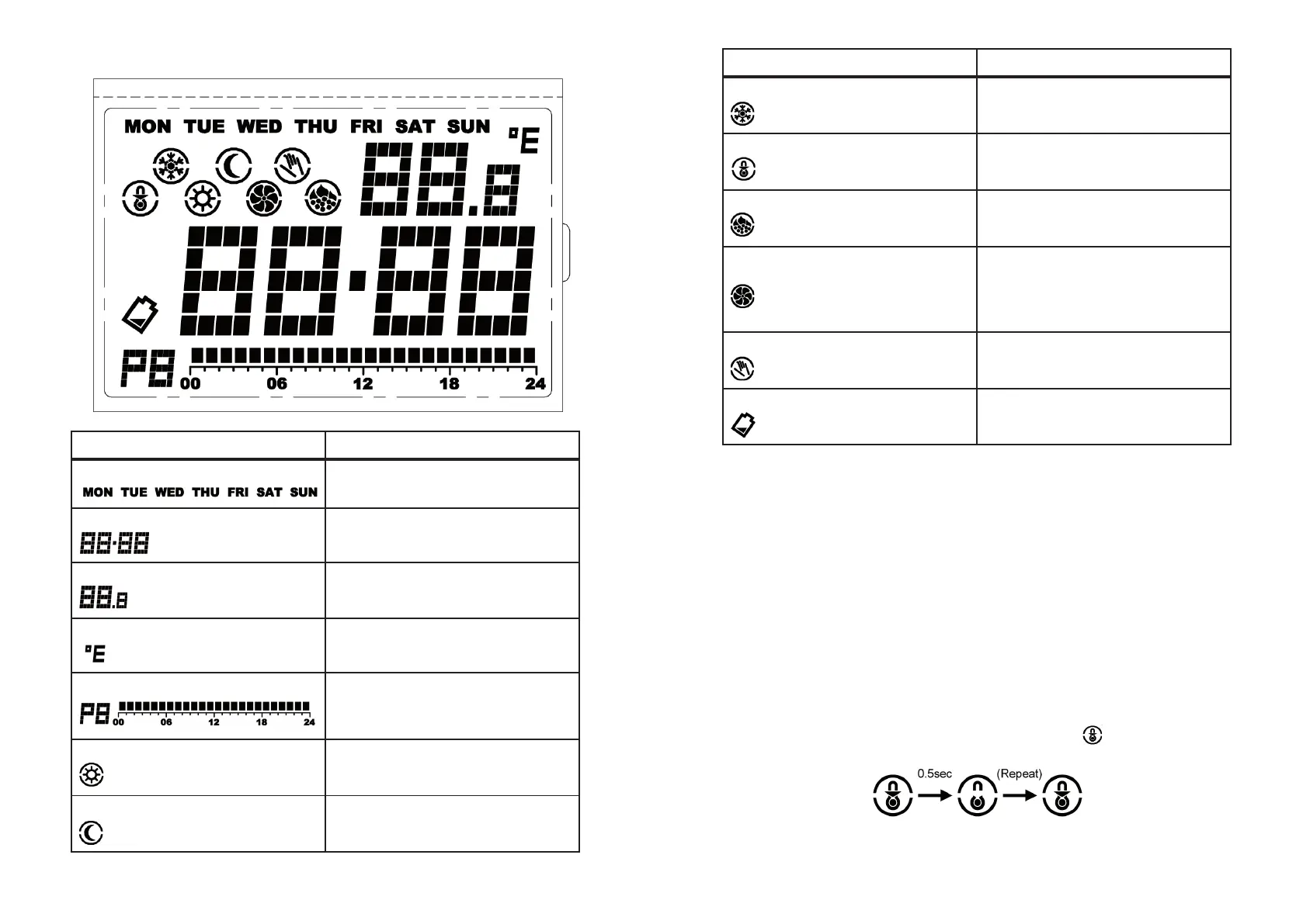 LCD indicators Function