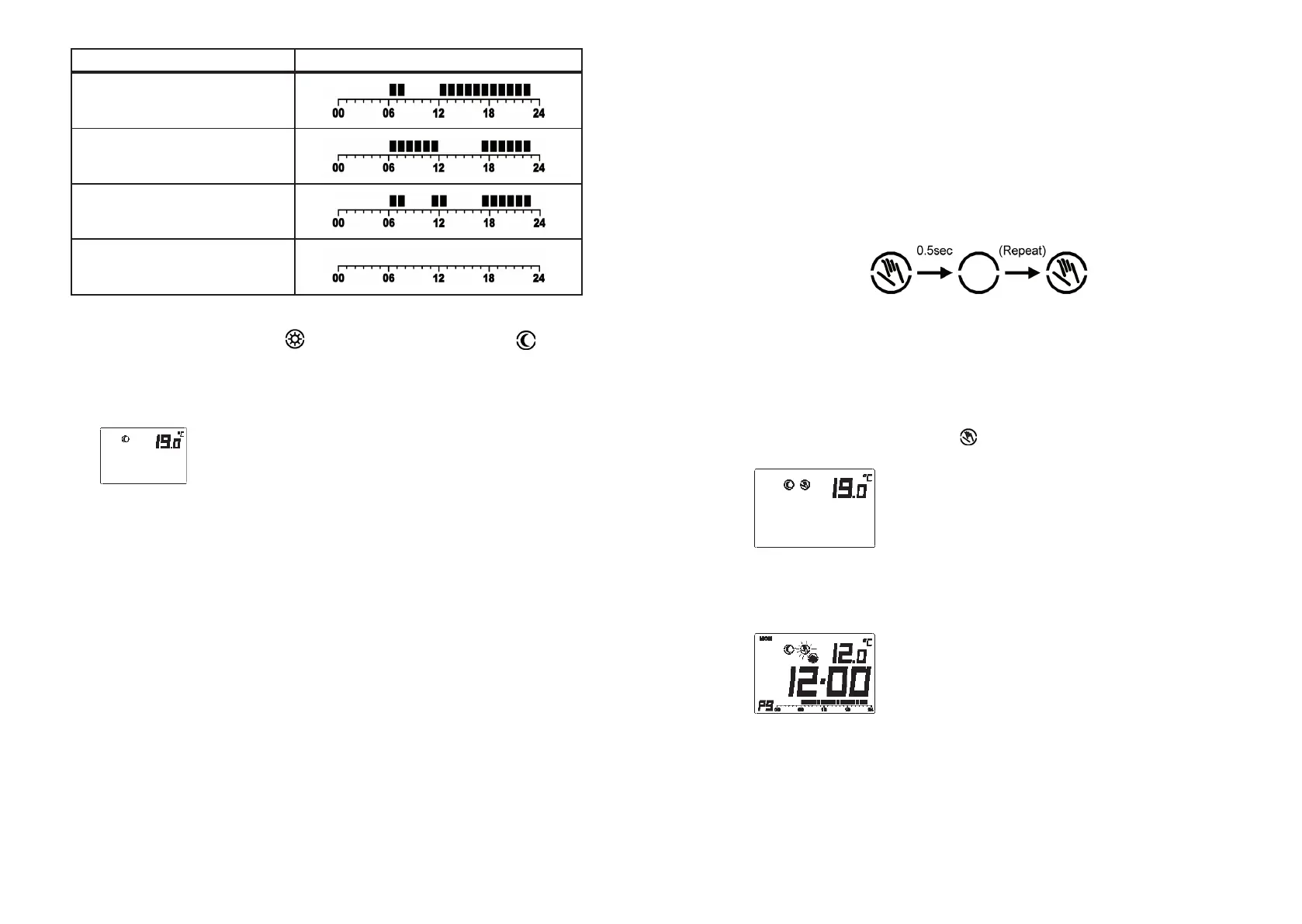 mérsékletek között. Beállításnál egyidejűleg változik a megfelelő ikon is.