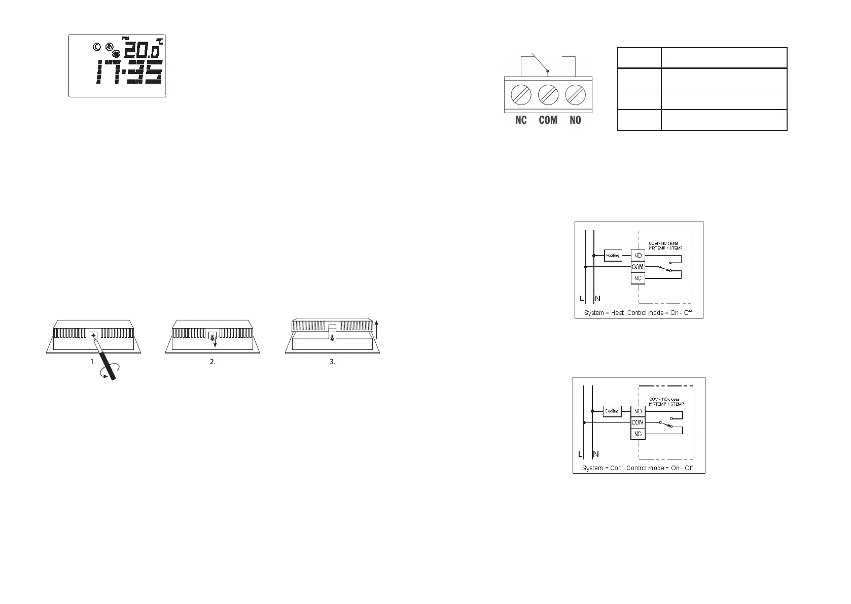 2. Cuplaţi pe borna marcată NO conductorul pentru încălzire (aer condiţionat).