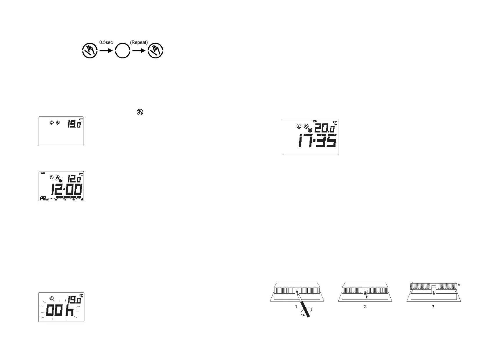4. Ikona za privremeno potiskivanje programa treperi i termostat je podešen.