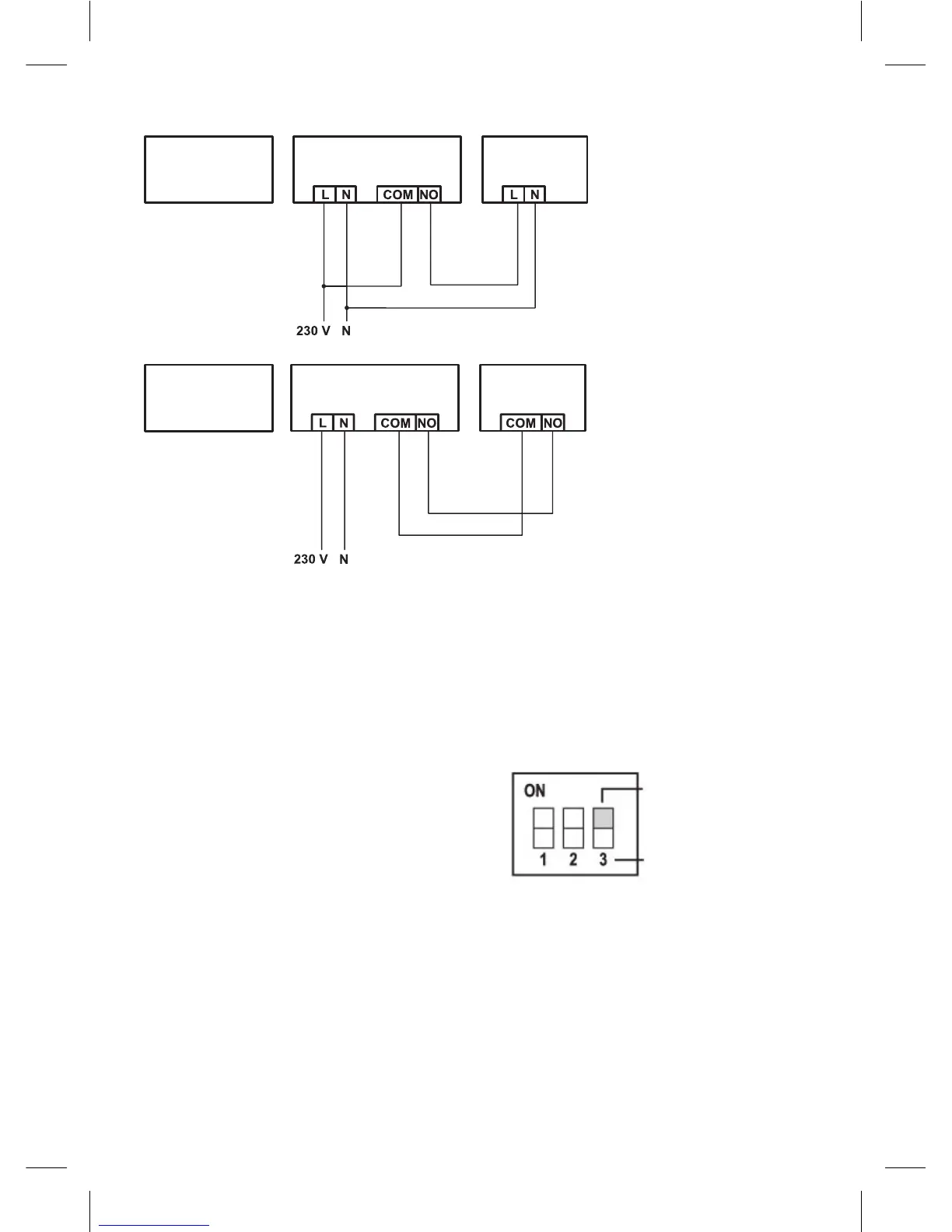 Schemat podłączenia przy zasilaniu 230 V AC/50 Hz