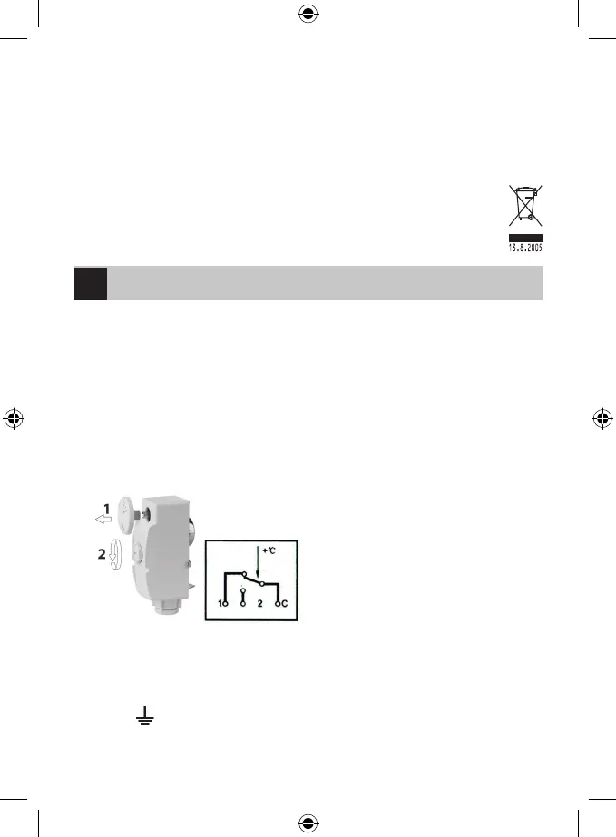 1. Otvorte termostat tým, že odstránite povytiahnutím číselník (1) a uvoľníte veľkú plastovú skrutku (2).