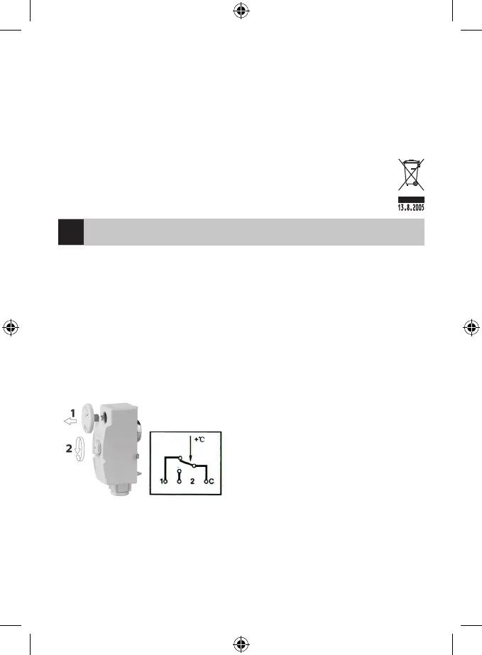 1. Deschideți termostatul, înlăturând cadranul (1), și destrângeți șurubul mare de plastic (2).