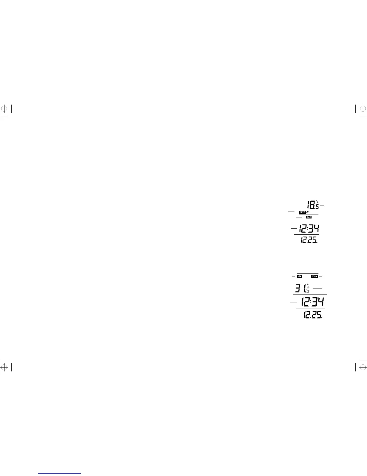 megjelenik az összes adat a kijelzőn és a hőmérő röviden sípol. Ezután a kijelzőn