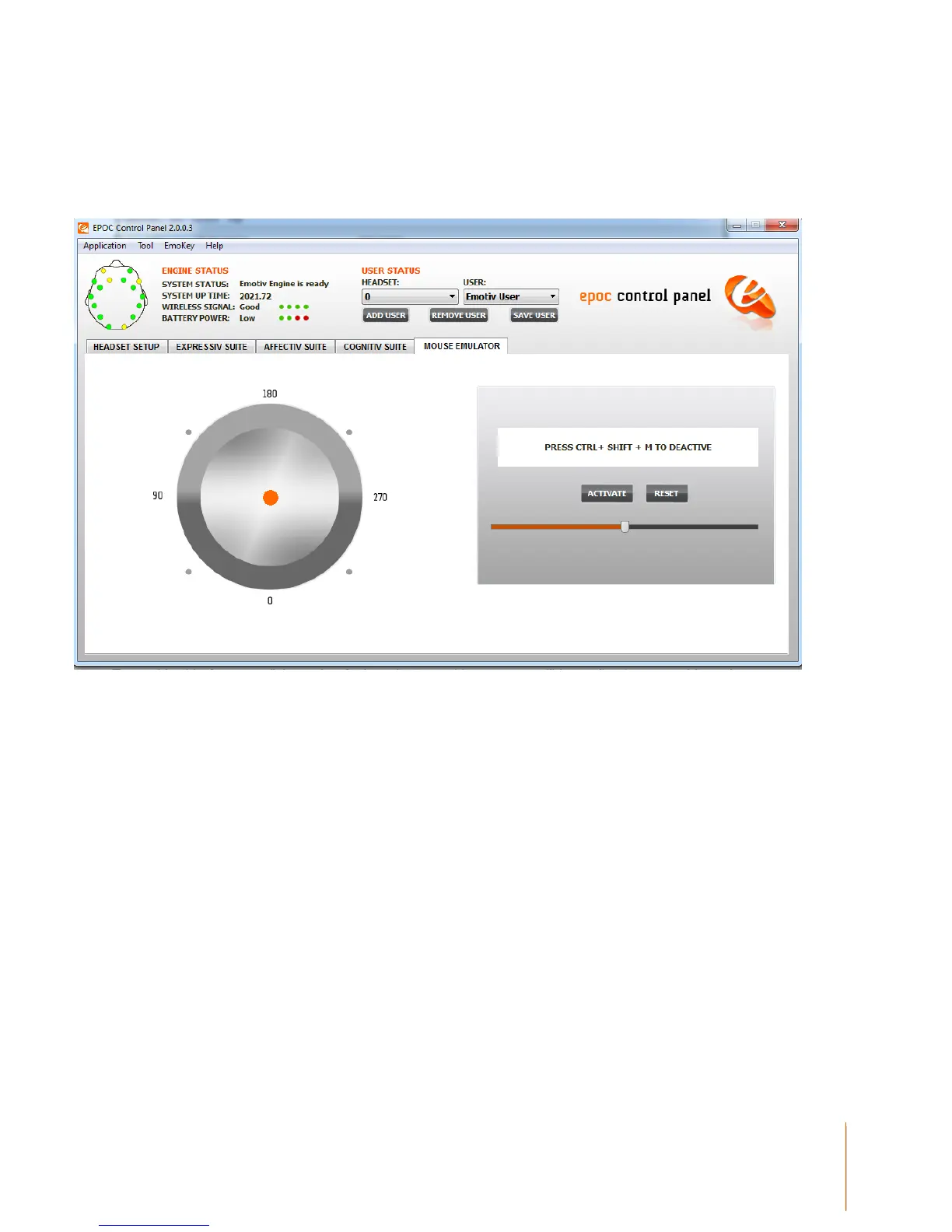 position. The right side of the Mouse Emulator Tab provides the controls to activate and deactivate