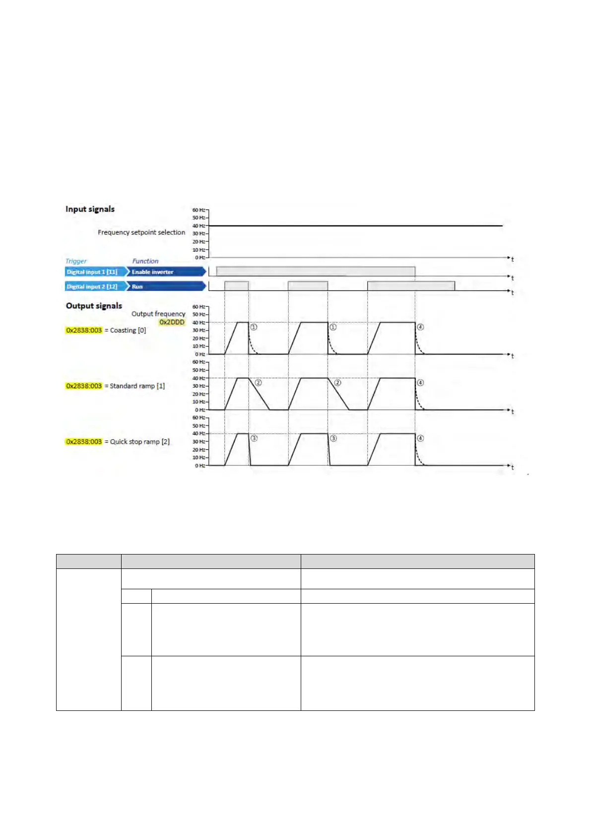 The stop method can be selected in 0x2838:003 (P203.03). The following diagram