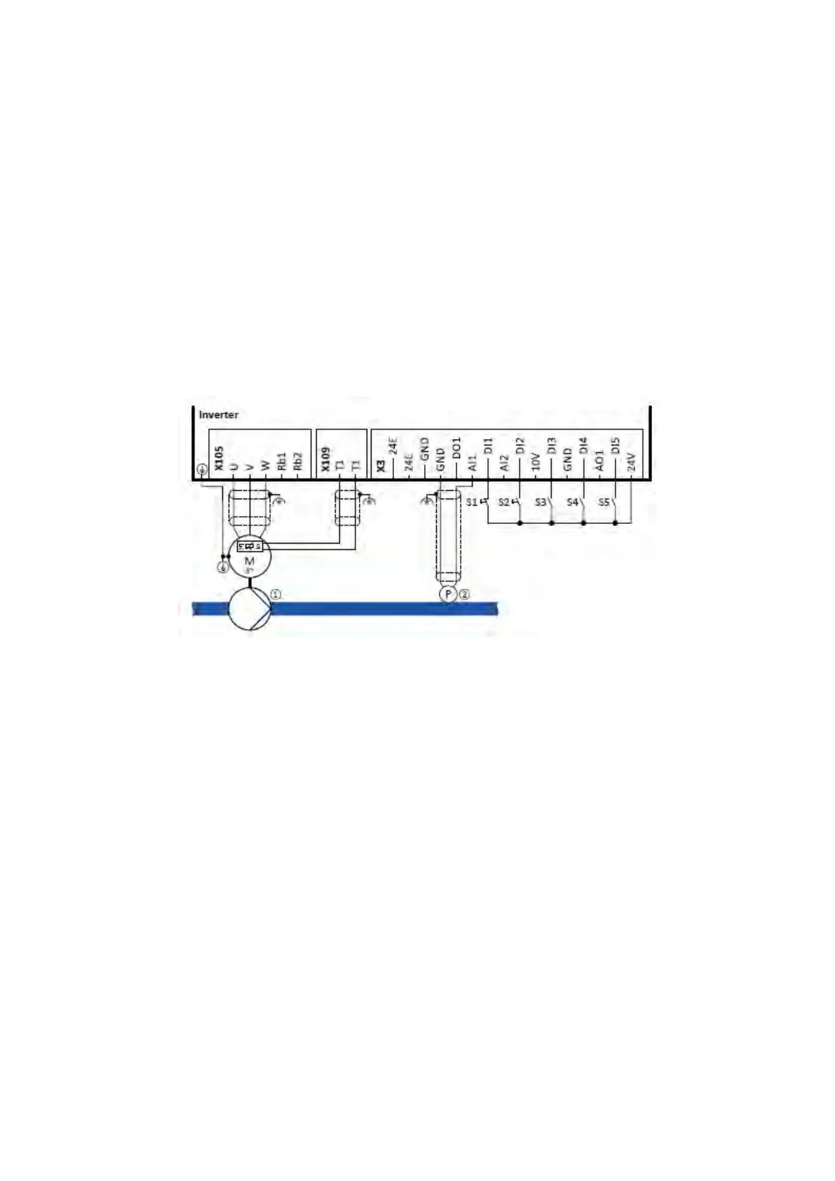 The following sample connection plan shows the control of a pump