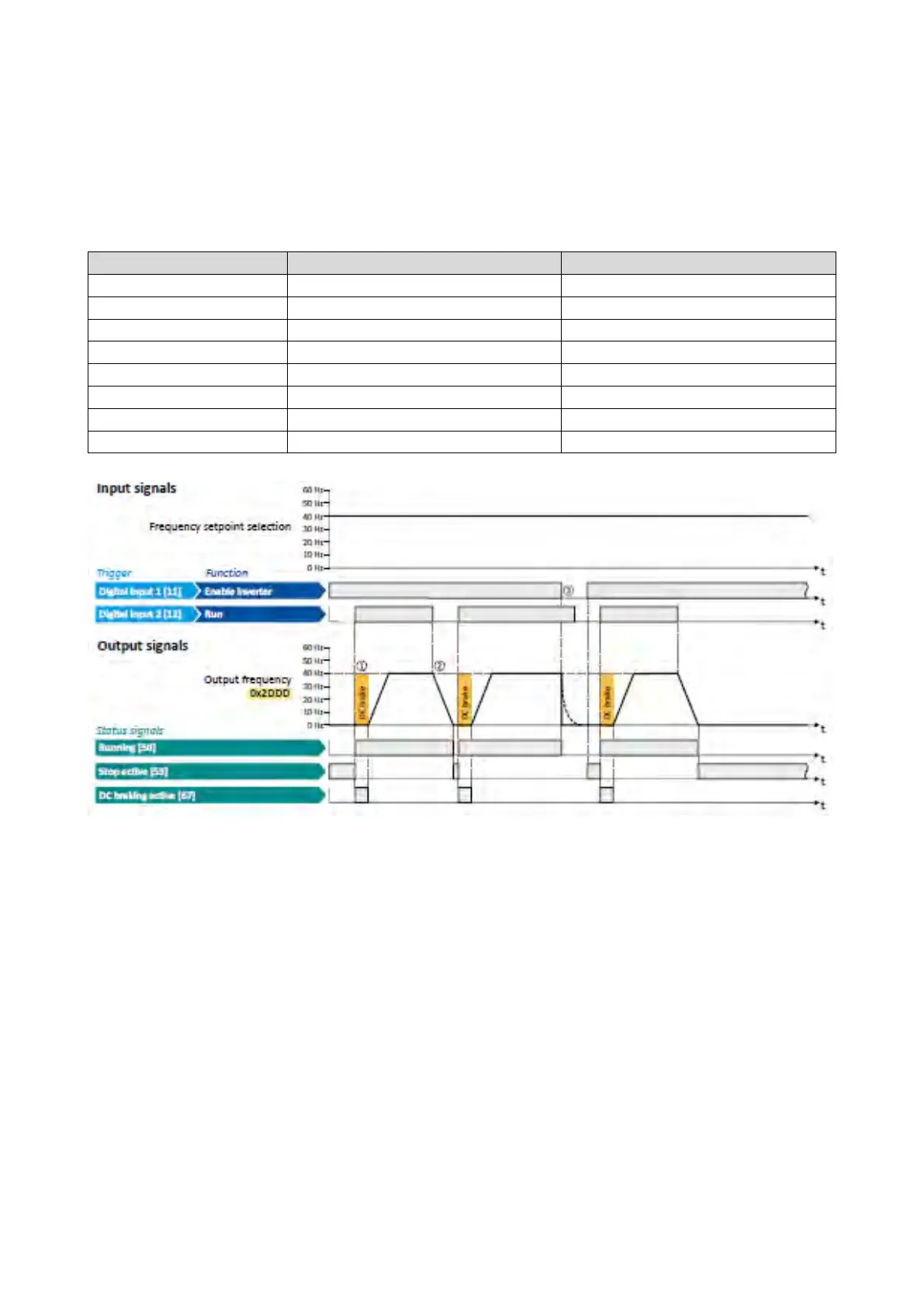 ① After the start command, the DC braking is active. Only after the hold time