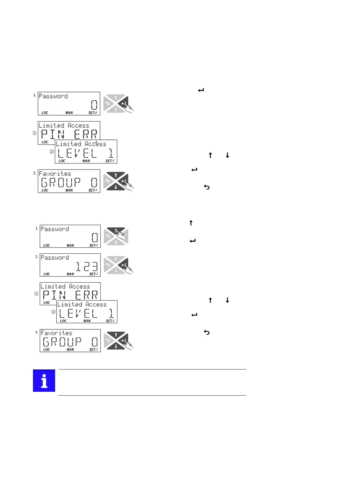 log-in when changing to the parameterisation mode. You can either skip the log-in and