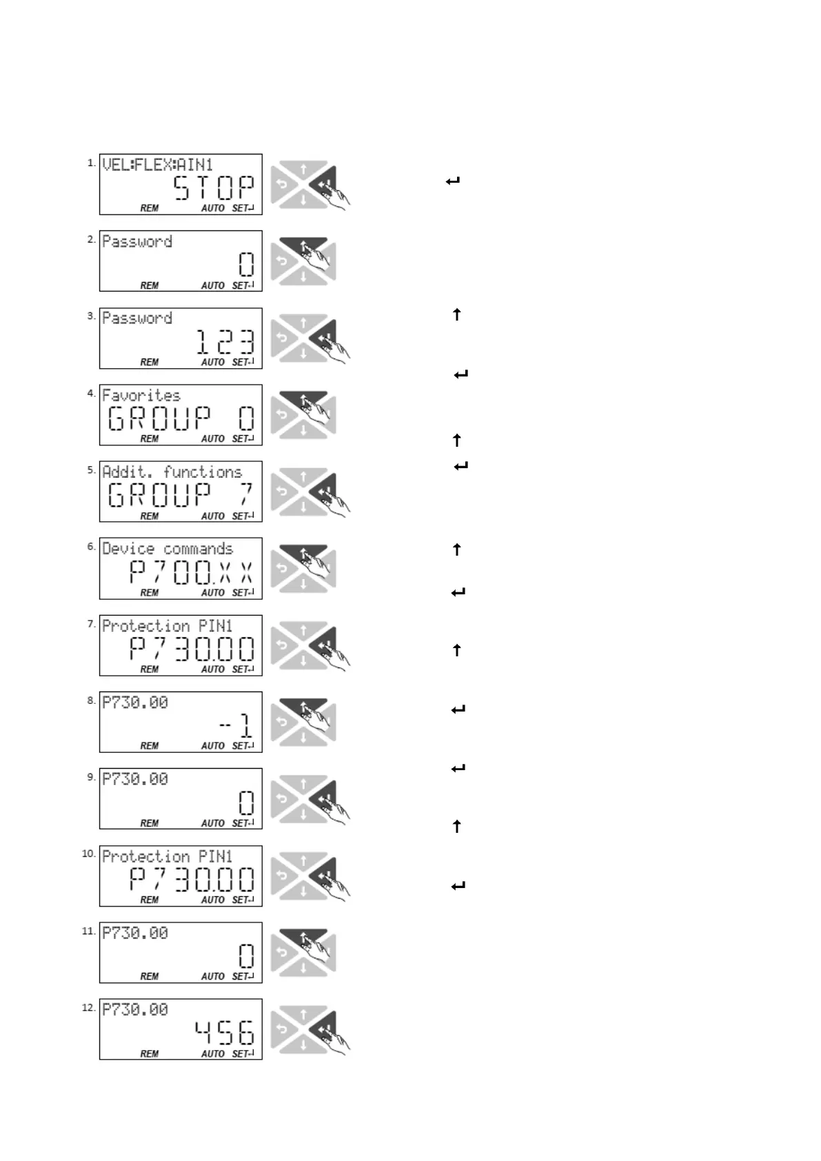 In the following example, PIN1 is changed from "123" to "456". For this purpose, the