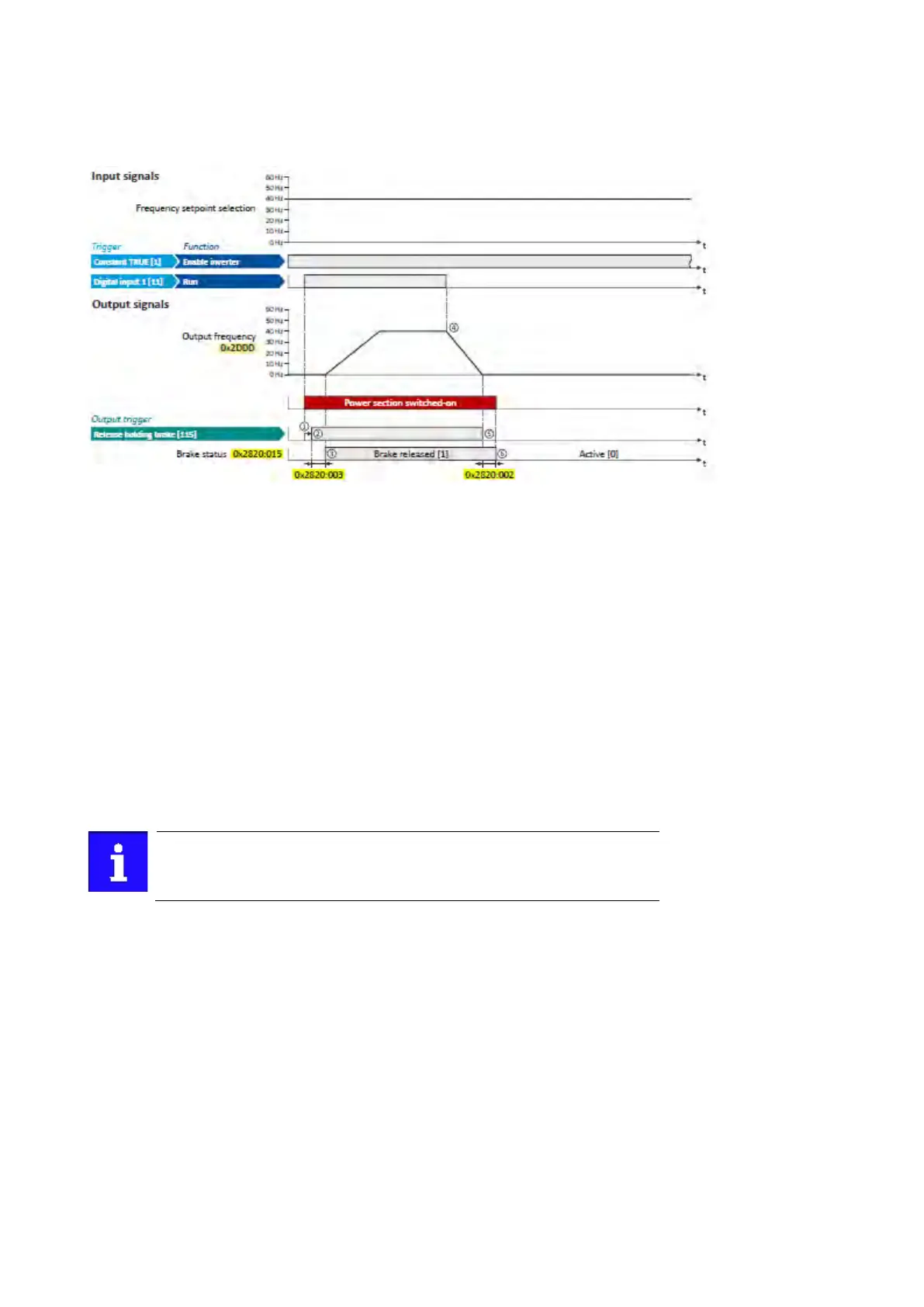 ② The holding brake is released. For this purpose, the output trigger "Release holding