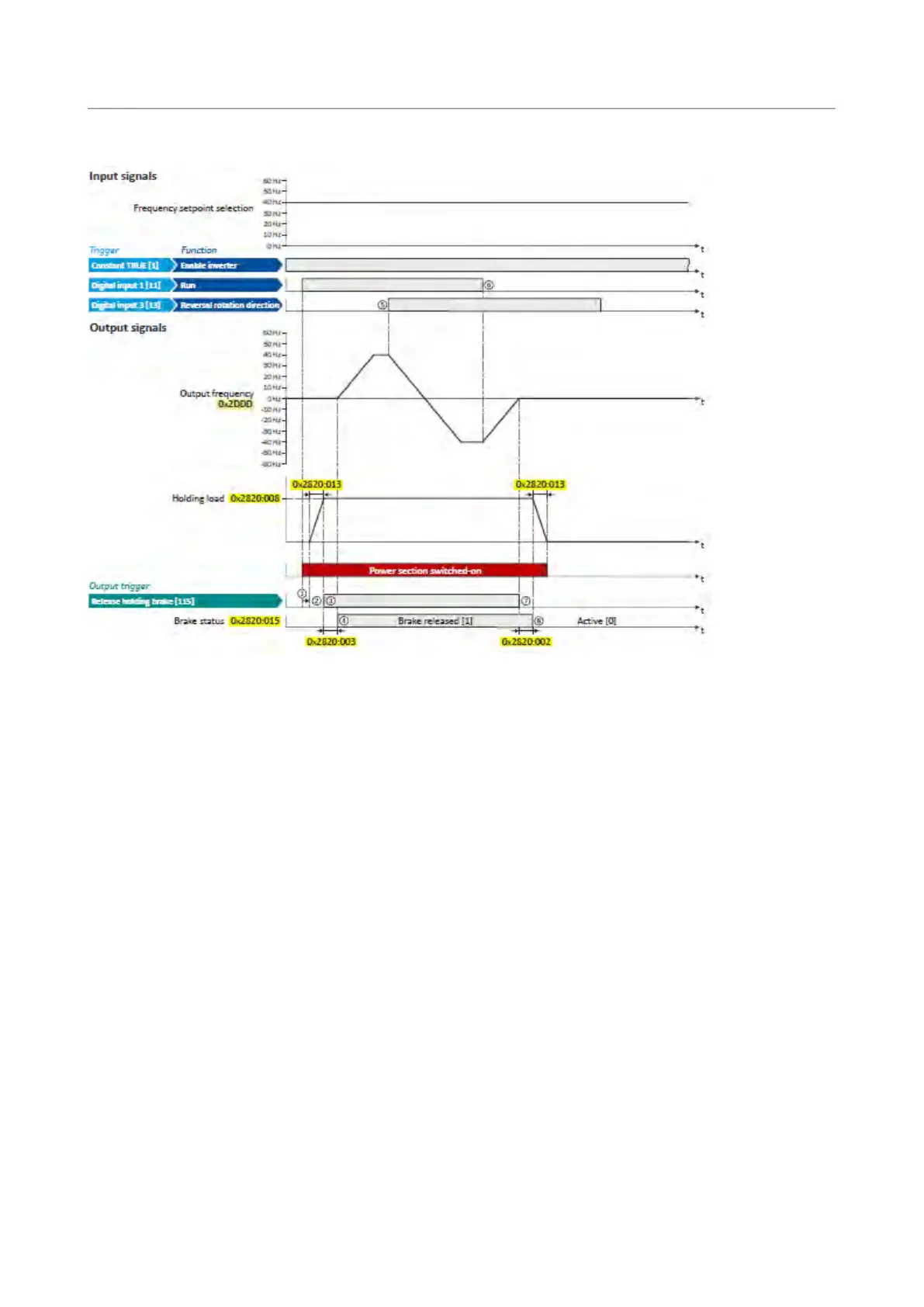③ The holding brake is released. For this purpose, the output trigger "Release holding