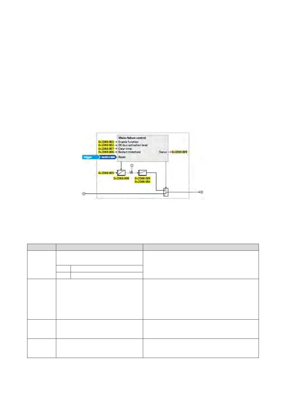 failure control is enabled in 0x2D66:001 (P721.01), it will get active if the DC-bus voltage