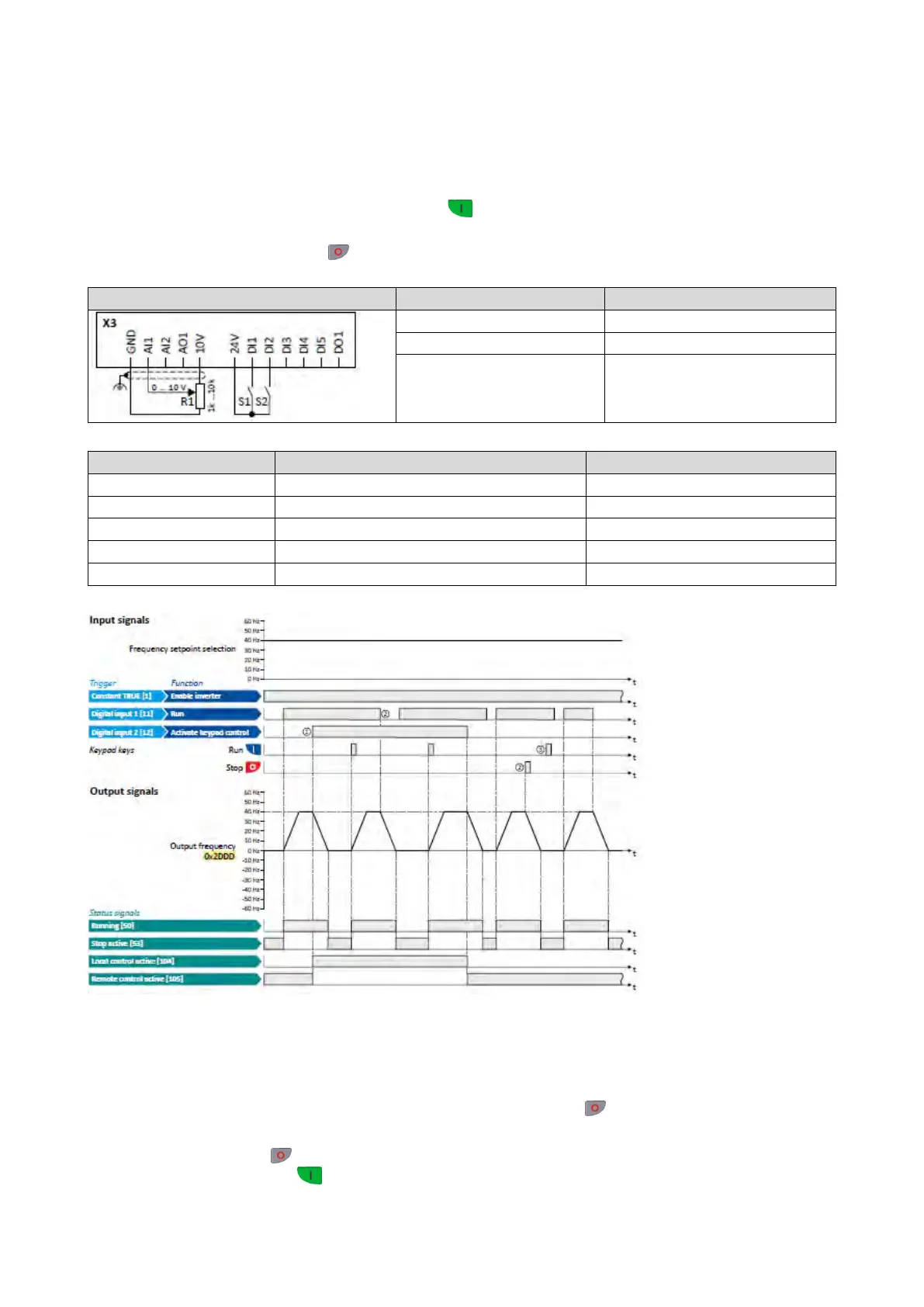 • The control is executed primarily via the I/O terminals: Switch S1 serves to start and