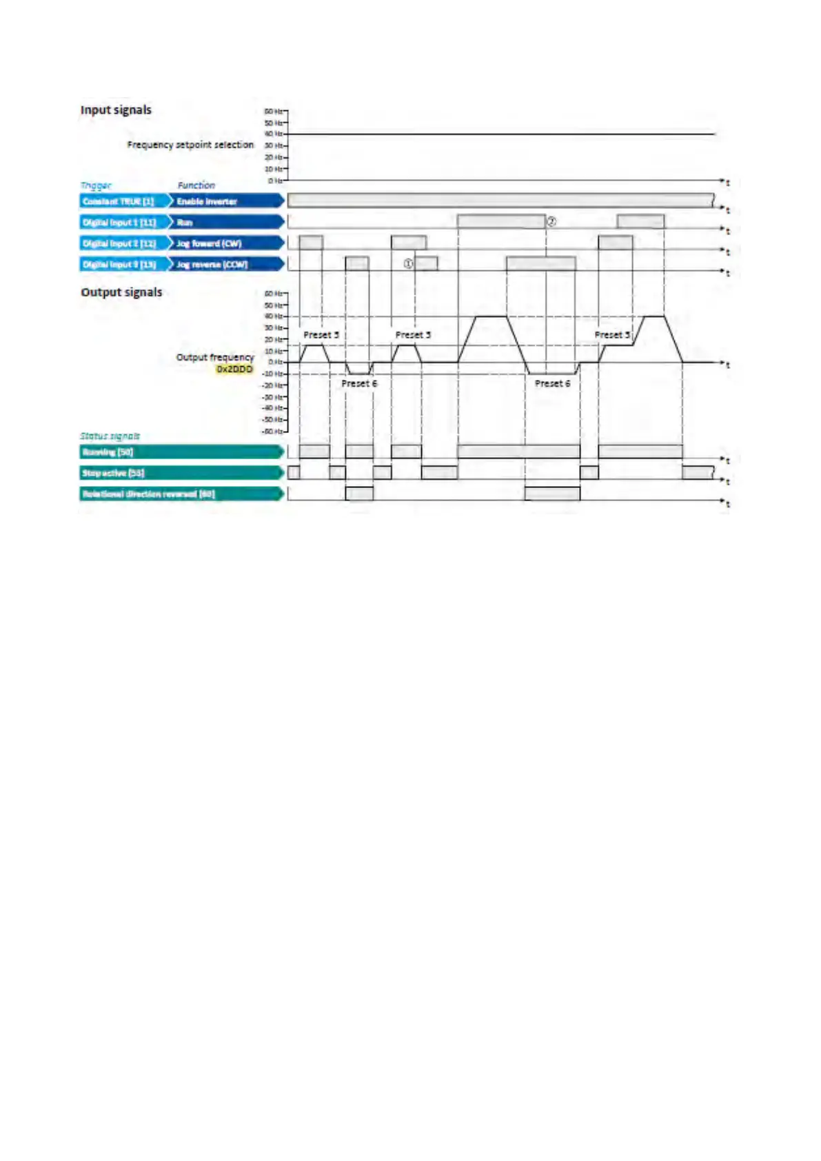 ① If "Jog foward (CW)" and "Jog reverse (CCW)" are activated at the same time, the