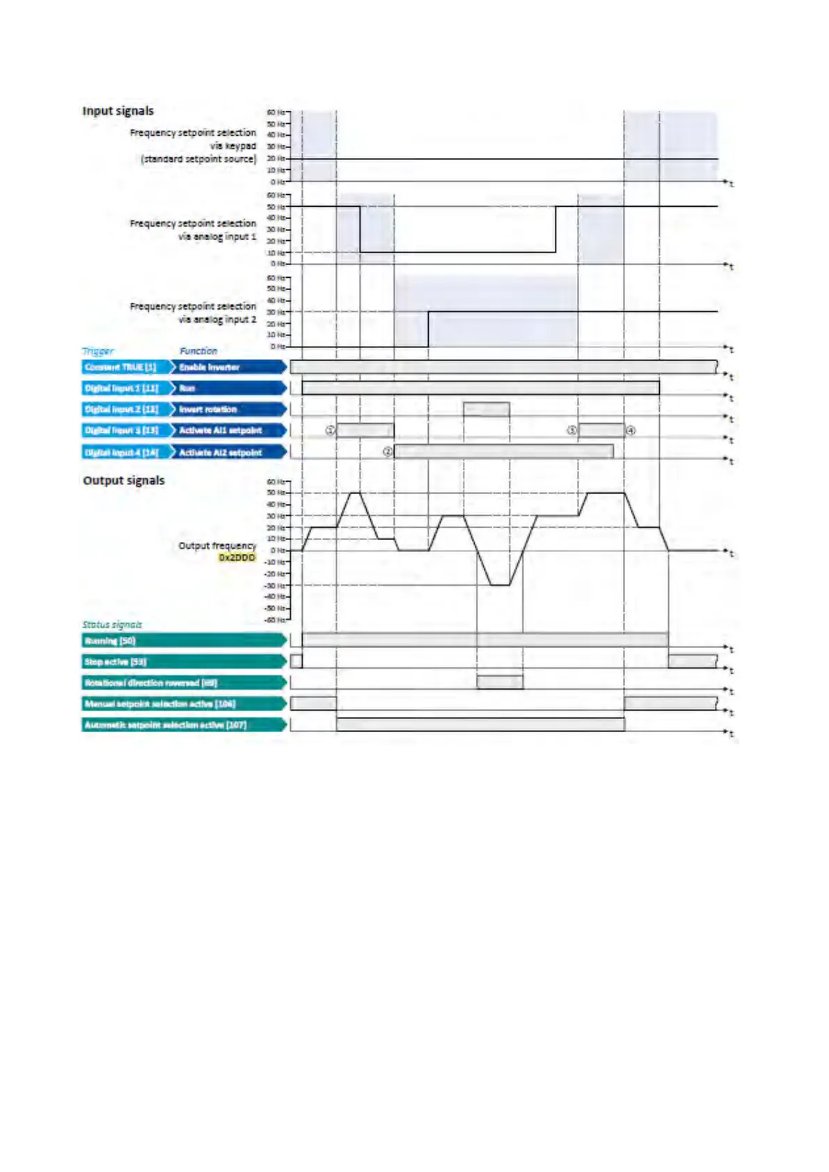 ① Change-over from keypad setpoint (standard setpoint source) to AI1 setpoint.