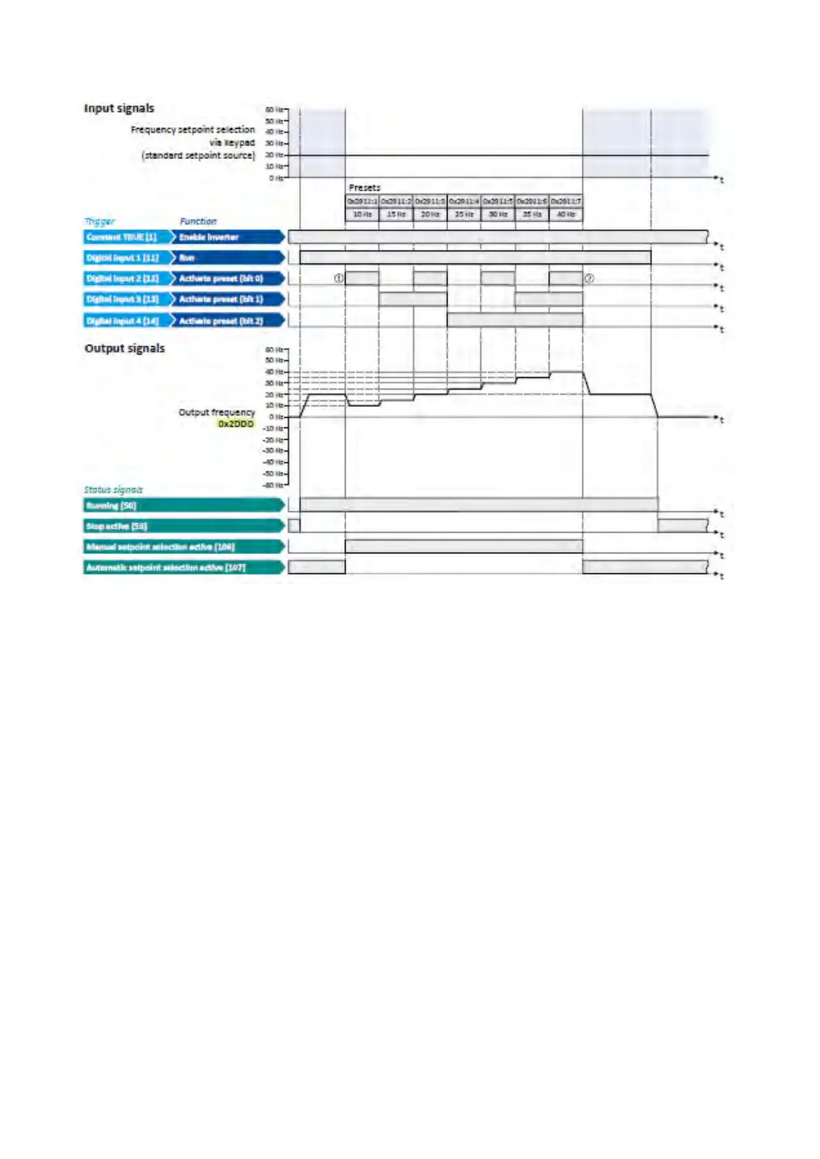 ② Change-over back to keypad setpoint since no preset is selected anymore (digital