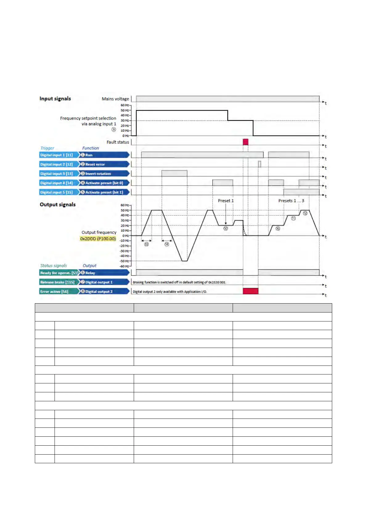 By default, the inverter can be controlled via the I/O terminals as follows: