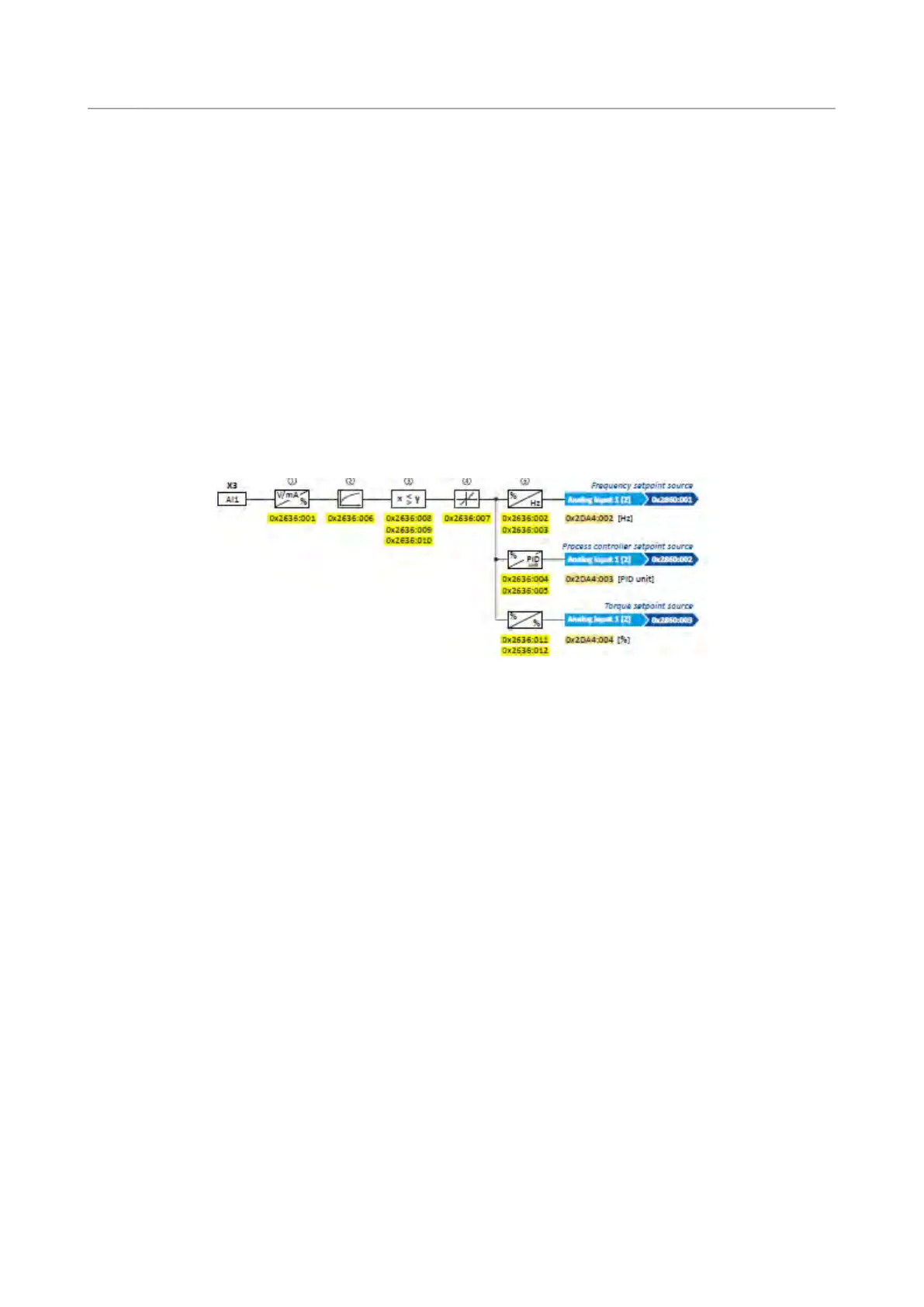 Example 1: Input range 0 ... 10 V ≡ setting range 0 ... 50 Hz