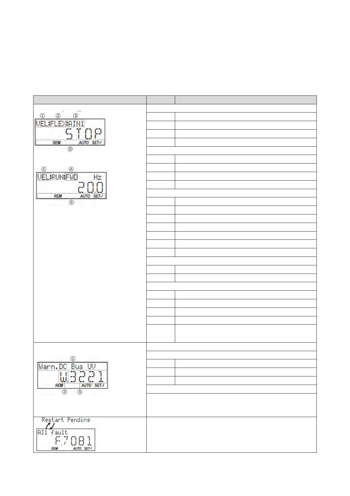 In the operating mode, the keypad displays information on the status of the inverter.