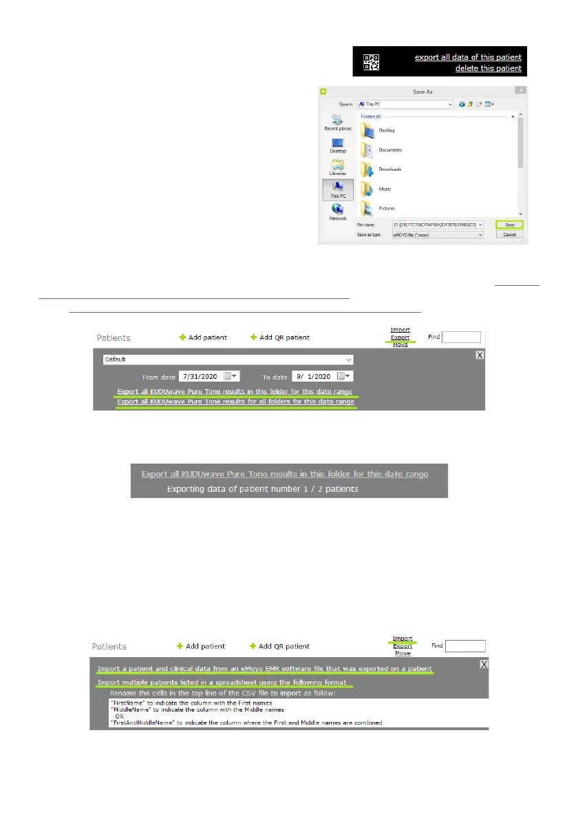 or all patients in all folders. In the folder view, click “Export”, select a date range and then click “Export all