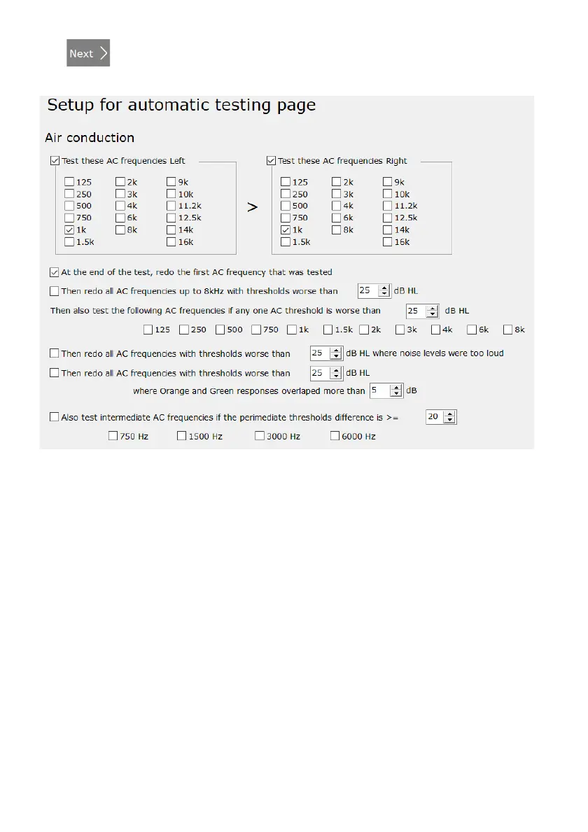 Select frequencies to be tested for each ear for air conduction and edit further settings to design your