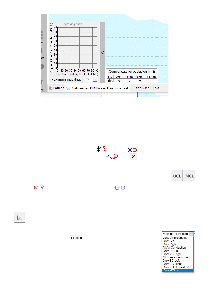 Loudness (UCL) levels on the audiogram, click MCL/ or UCL. The MCL and