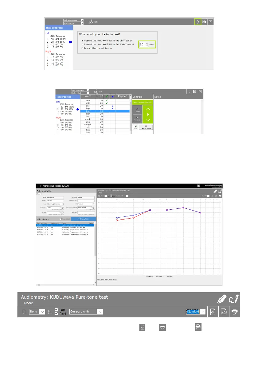 Change the dB level and click the “Next” arrow again. Continue testing at the new dB level.