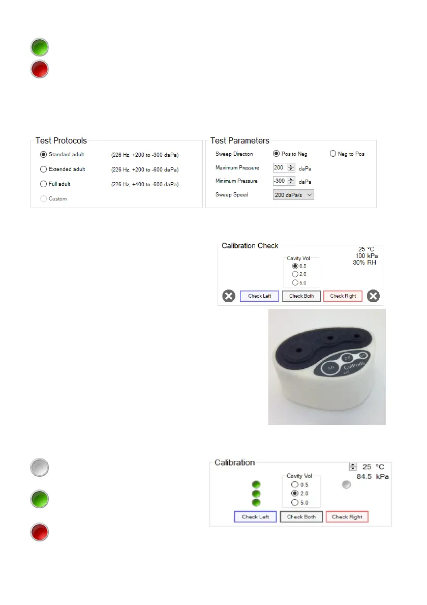 As the check is being done, lights appear next to the respective cavity volumes on the respective side: