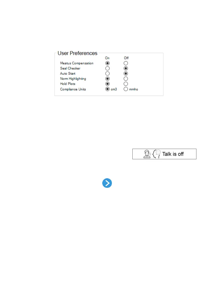 tympanometry test automatically according to your previously chosen settings.