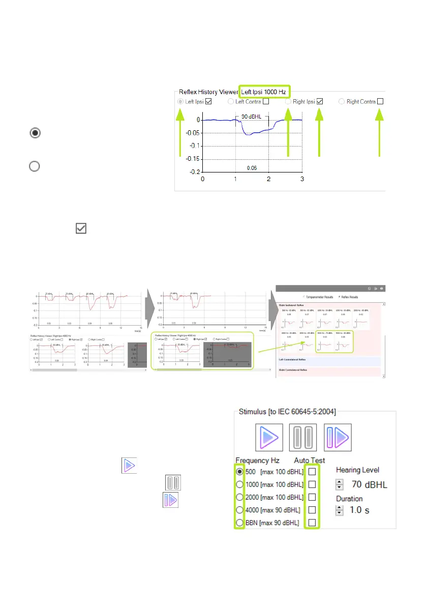 check boxes . In this example Left Ipsi and Right Ipsi will be tested. To change the reflex types that