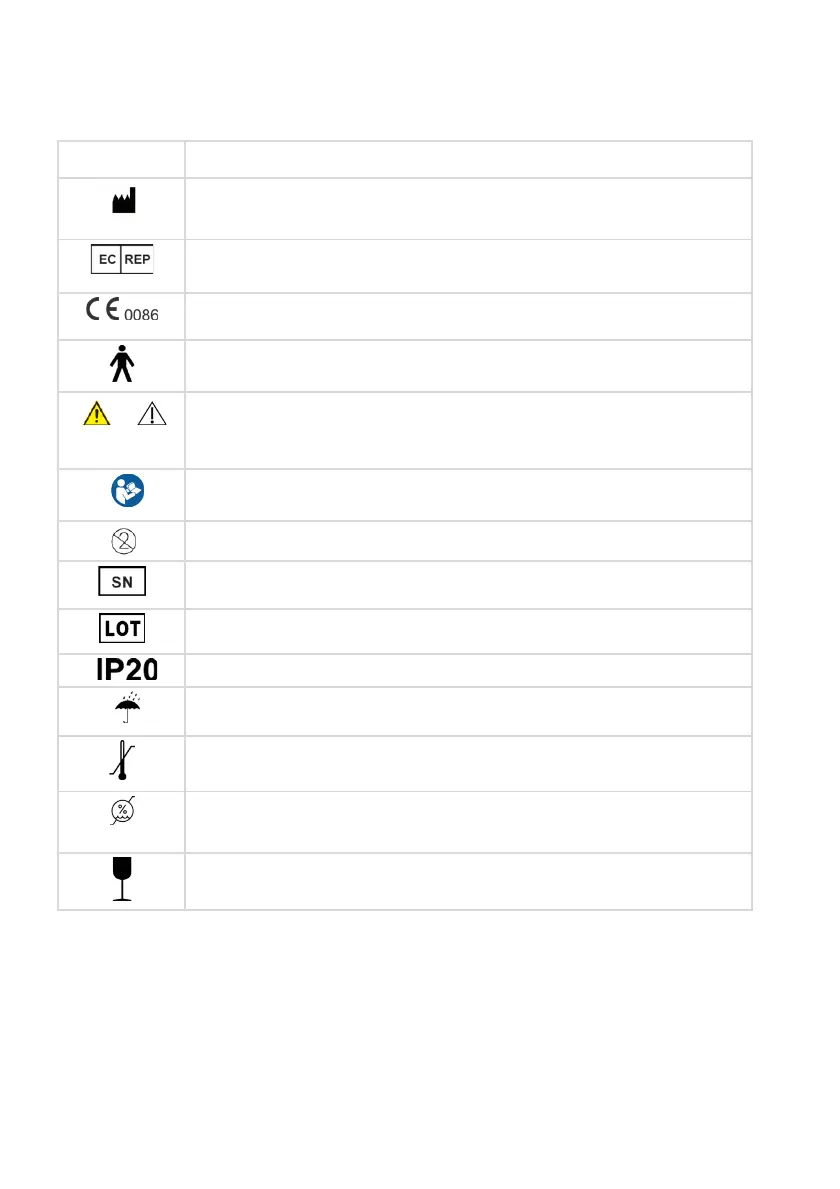 Humidity limit. Indicates the range of humidity to which the medical device can be safely