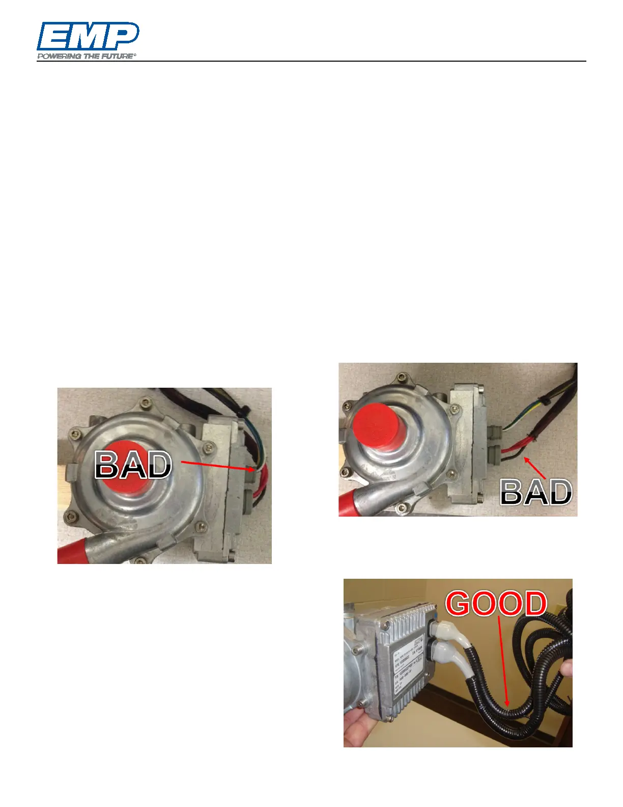 This should be verified at the pump’s maximum current draw. Wiring or electrical harness must not rub