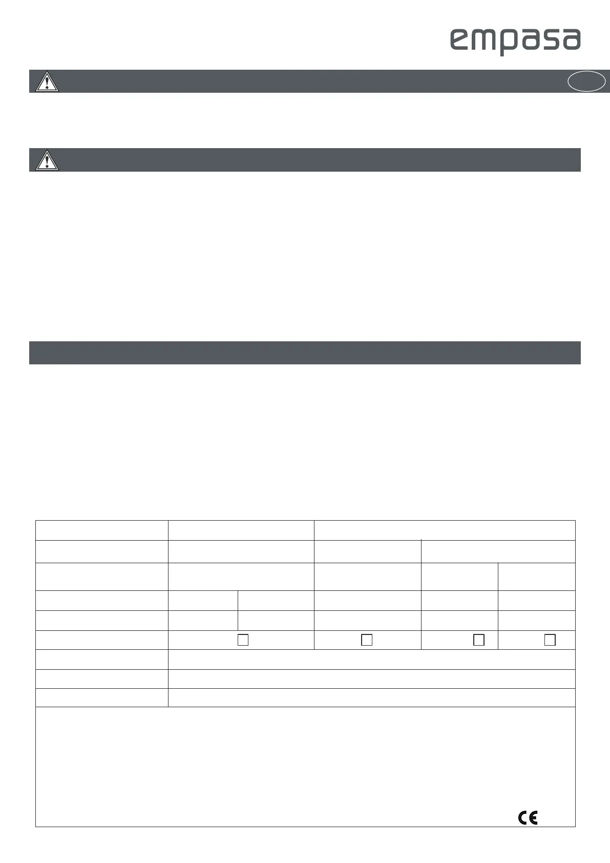 Ÿ The rubber hose must bear a CE marking and be thermally stable from -20° to 80°.