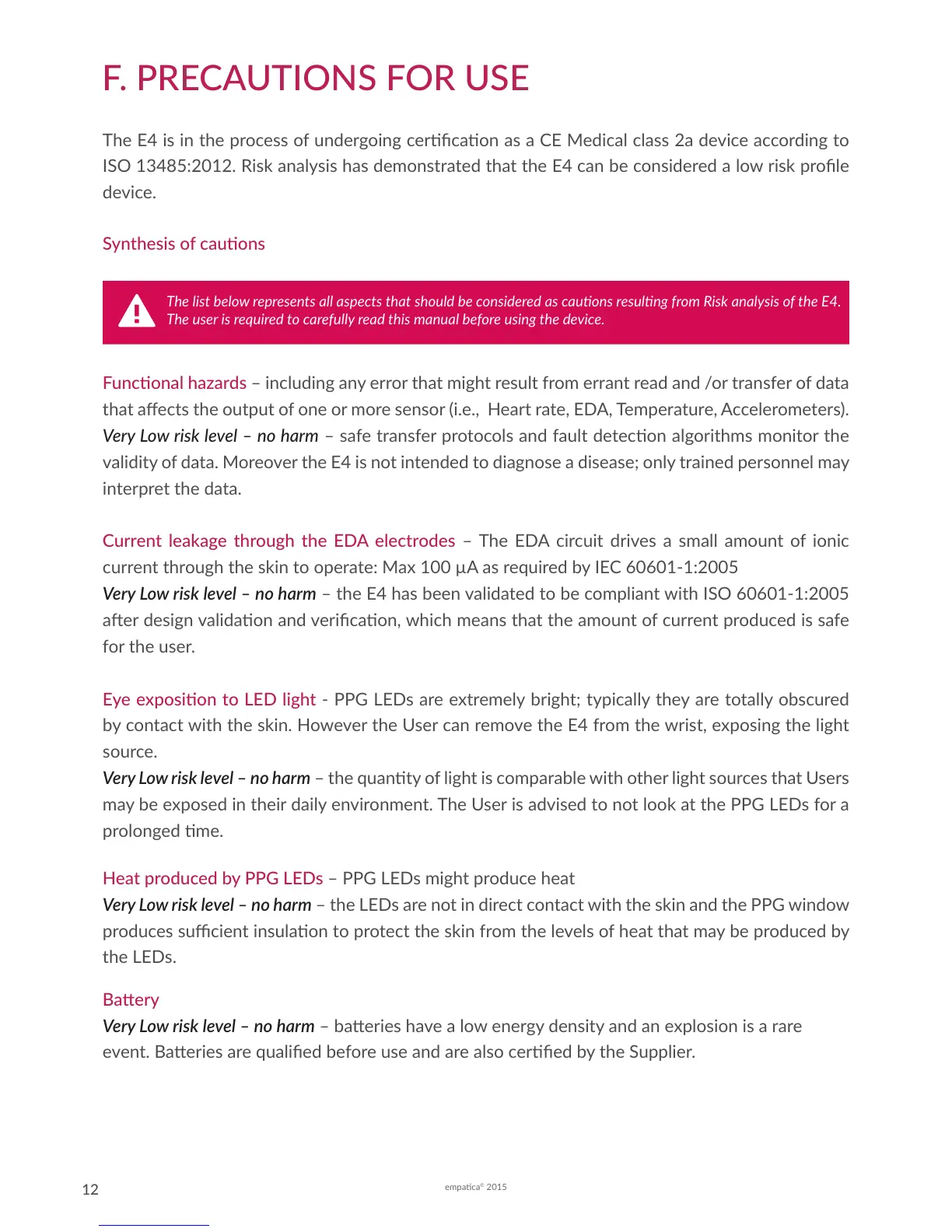 ISO 13485:2012. Risk analysis has demonstrated that the E4 can be considered a low risk prole